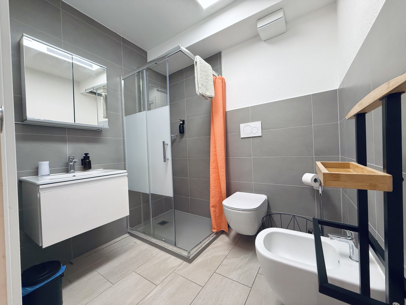 L’intero ambiente è arredato con gusto e combina materiali caldi e moderni con tonalità neutre e accenti di colore, creando un’atmosfera accogliente, ideale sia per soggiorni brevi che prolungati.