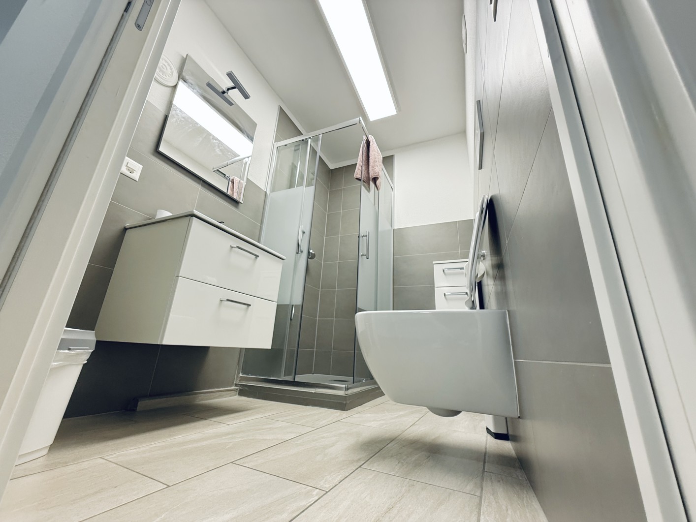 Questo ambiente accogliente e moderno è progettato per massimizzare funzionalità e comfort. La stanza è arredata in stile contemporaneo, con colori neutri ed eleganti dettagli che creano un’atmosfera rilassante.