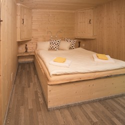 La zona principale della stanza comprende un ampio letto matrimoniale con un materasso confortevole, che garantisce un riposo piacevole. Il letto è posizionato in modo strategico per ottimizzare lo spazio disponibile, senza compromettere il comfort.